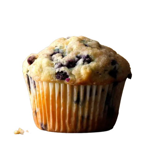 Muffins are small, round, sweet cakes, usually with fruit or bran inside. They are often eaten with butter for breakfast.